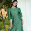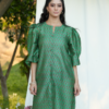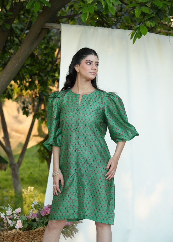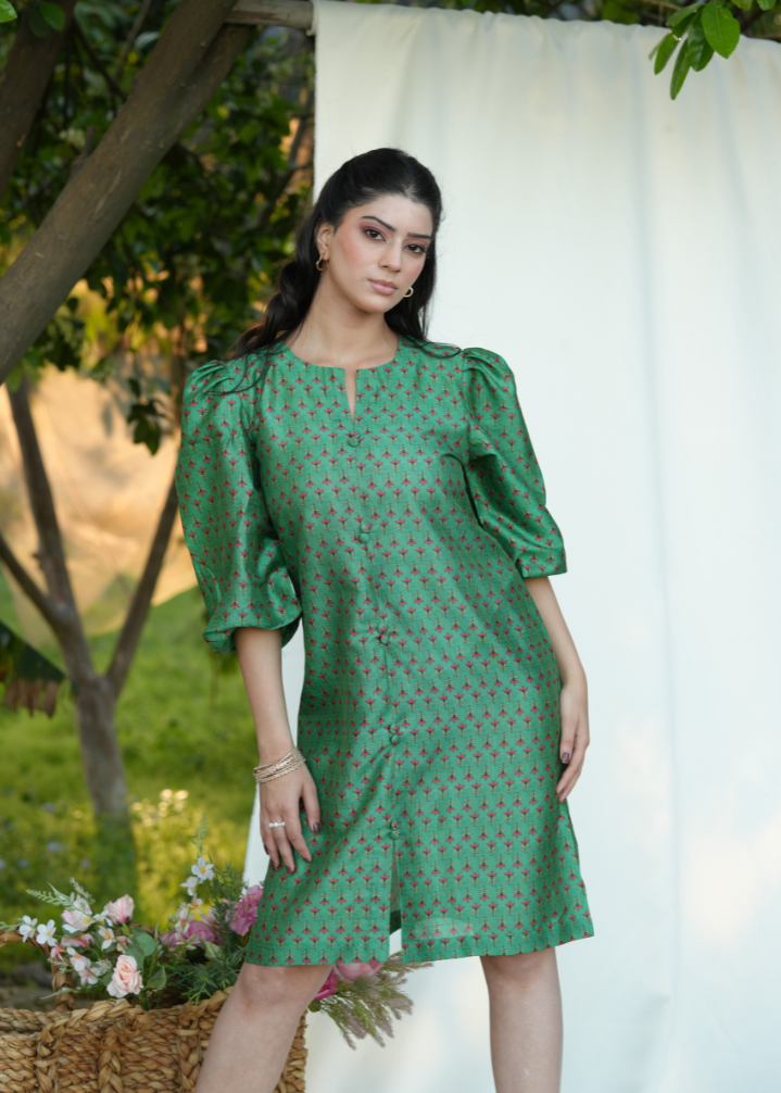 - Captivating Print: Adorned with a charming design in rich green hues, this dress brings a touch of nature’s beauty to your wardrobe. The eye-catching patterns add a playful flair, ensuring you stand out in style.