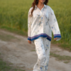 - Stylish Details: The ends of the sleeves on the shirt, as well as the cuffs of the pants, are accented with a complementary fabric, adding an extra layer of sophistication to the ensemble. This detail enhances the overall look while providing a unique touch that sets this outfit apart.